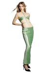 The outfit consists of a two-piece set in a shimmering green fabric that catches the light with every movement. The top piece is a halter-style bandeau with a tie-front detail, creating a cut-out effect that reveals the midriff. The metallic sheen of the fabric gives it a luxurious and modern edge. The straps extend around the neck, highlighting the shoulders and adding an element of elegance to the ensemble. Its fishtail silhouette beautifully accentuates your curves. It features meticulously crafted, high-density sequins for a touch of exquisite charm.